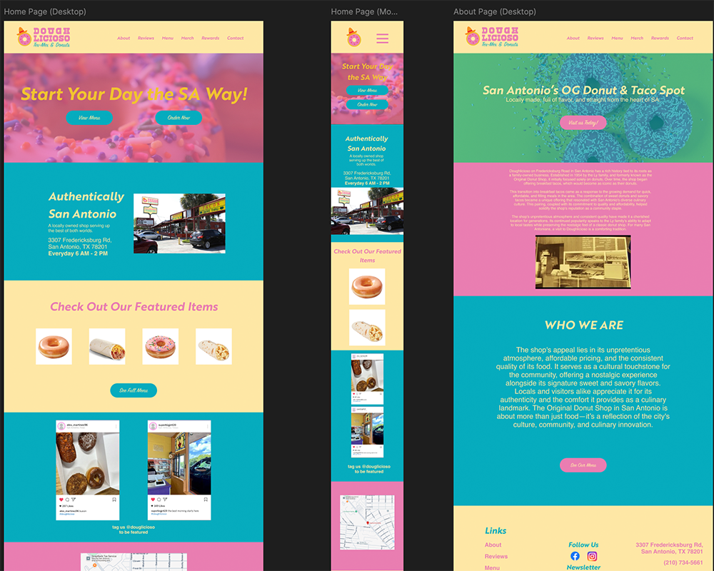 In a city where breakfast is serious business, I set out to design a website for a one-of-a-kind shop that serves both sweet and savory with serious flavor. This project blends culture, cravings, and community to deliver a brand experience as bold as its food. Think fresh donuts, hot tacos, and that bold San Antonio flair in every scroll.