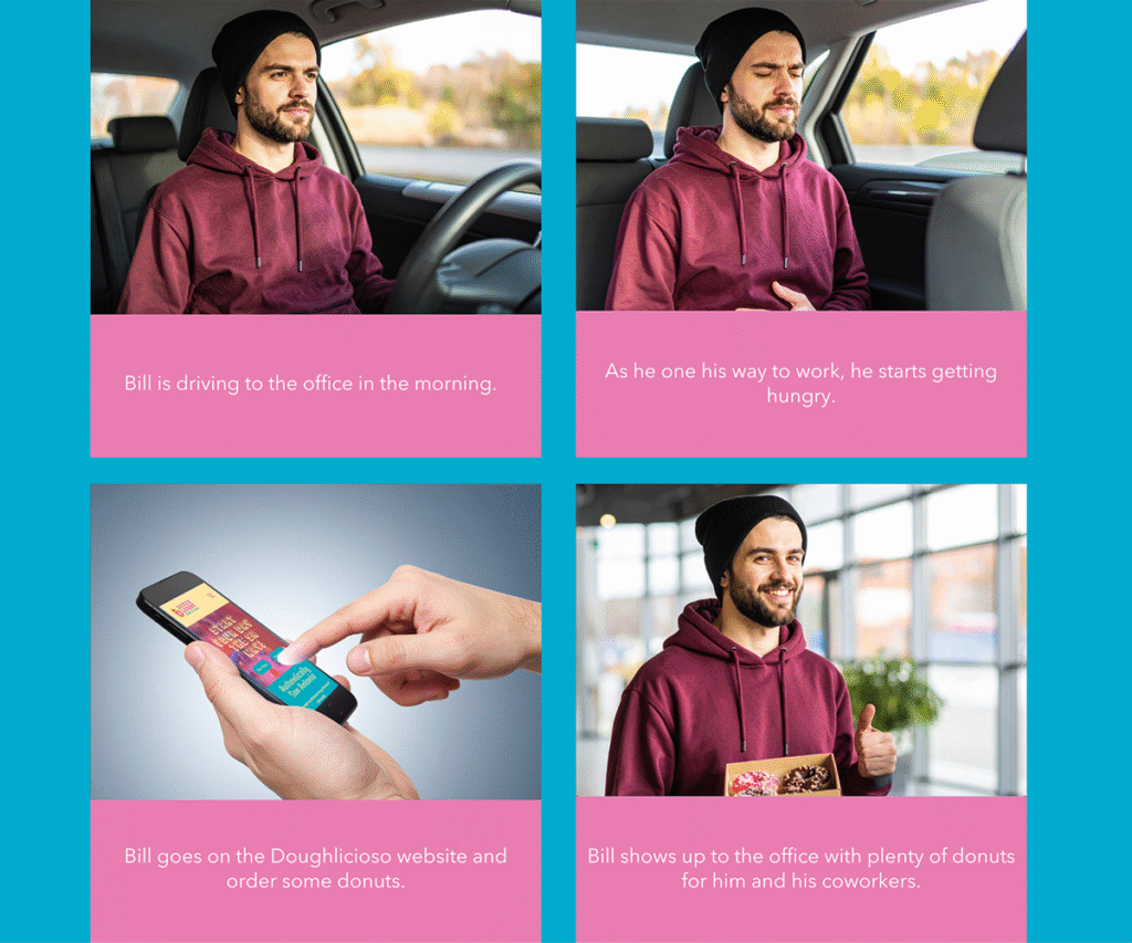 A scenario was used to describe the situation that the user would do when craving donuts, tacos, or any Tex-Mex.