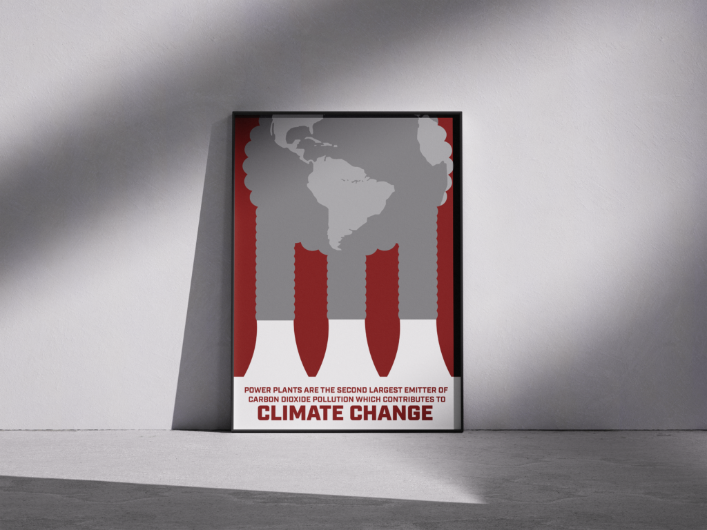 This poster sends a message on why power plants are one of the reasons for the world’s skyrocketing increase in climate change. Its limited color palette gives this poster a more depressing feel.