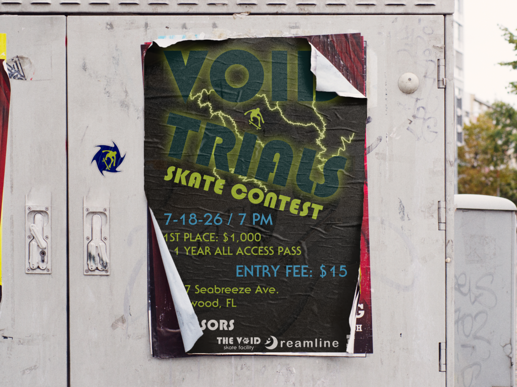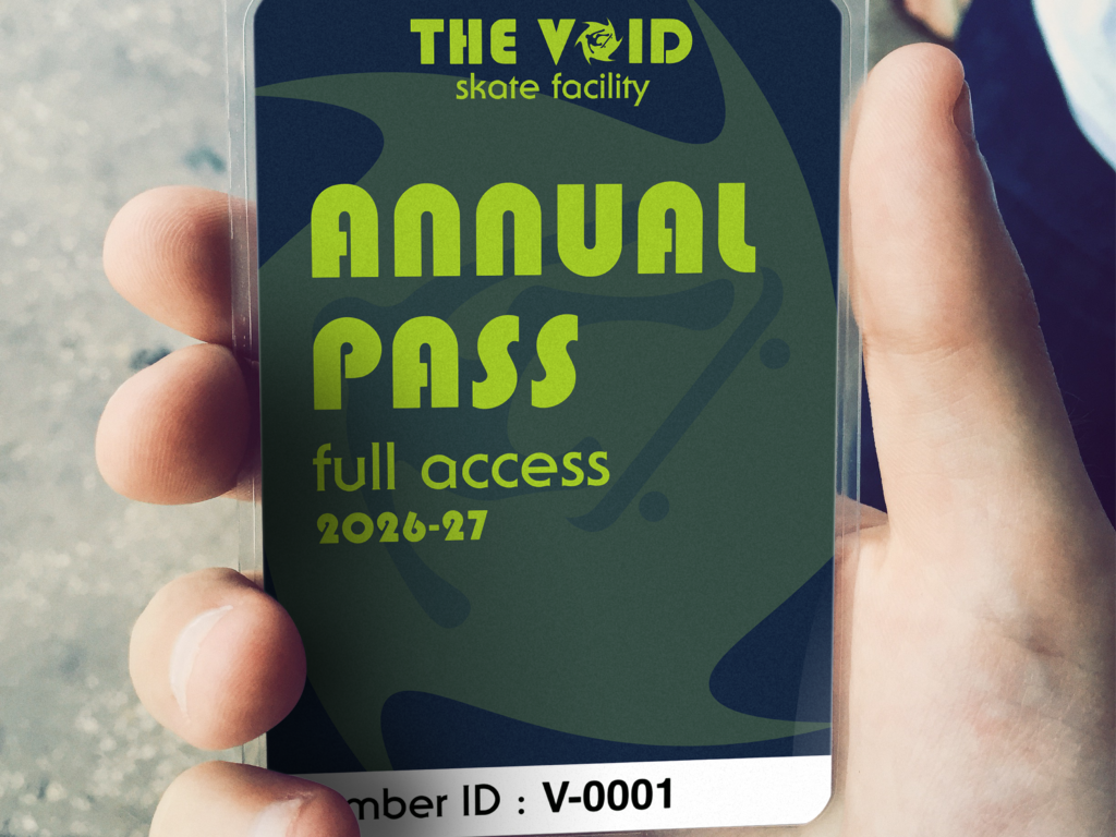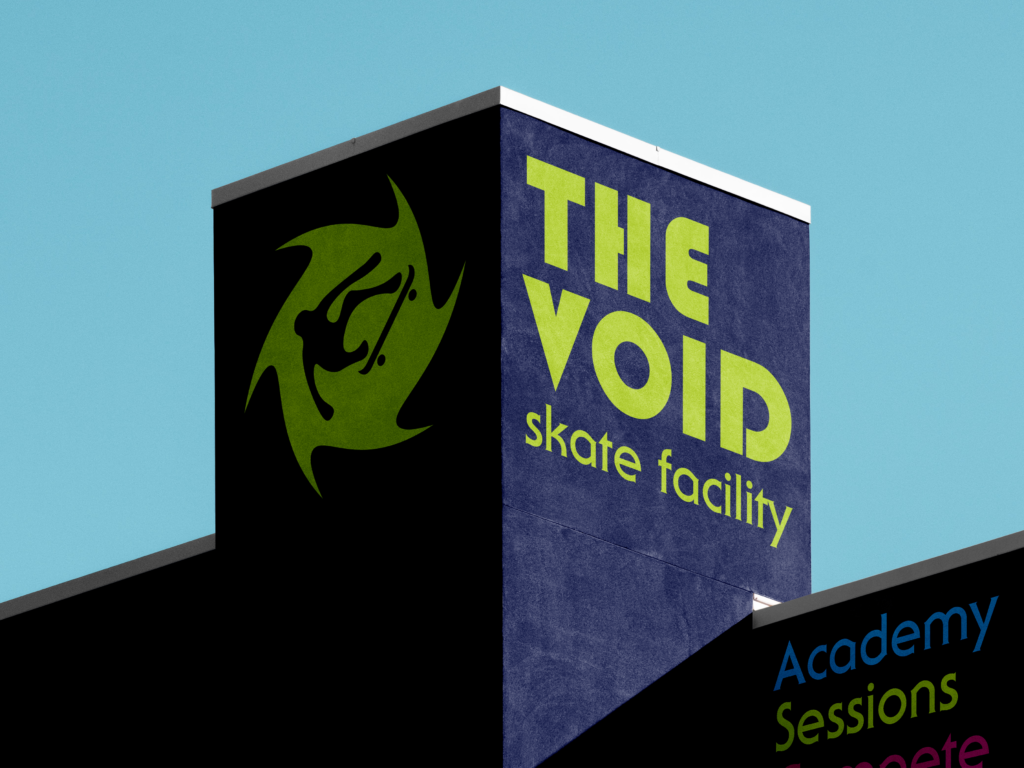 The Void is not just a skatepark but a facility brand built around movement, progression, and contrast. By dividing the experience into day and night sessions, the brand creates a dynamic environment that supports growth, community, and high-energy performance.