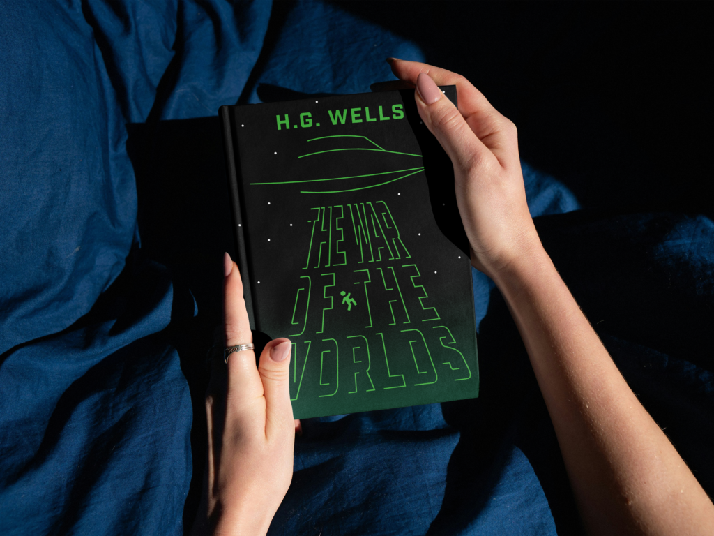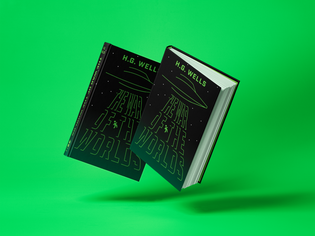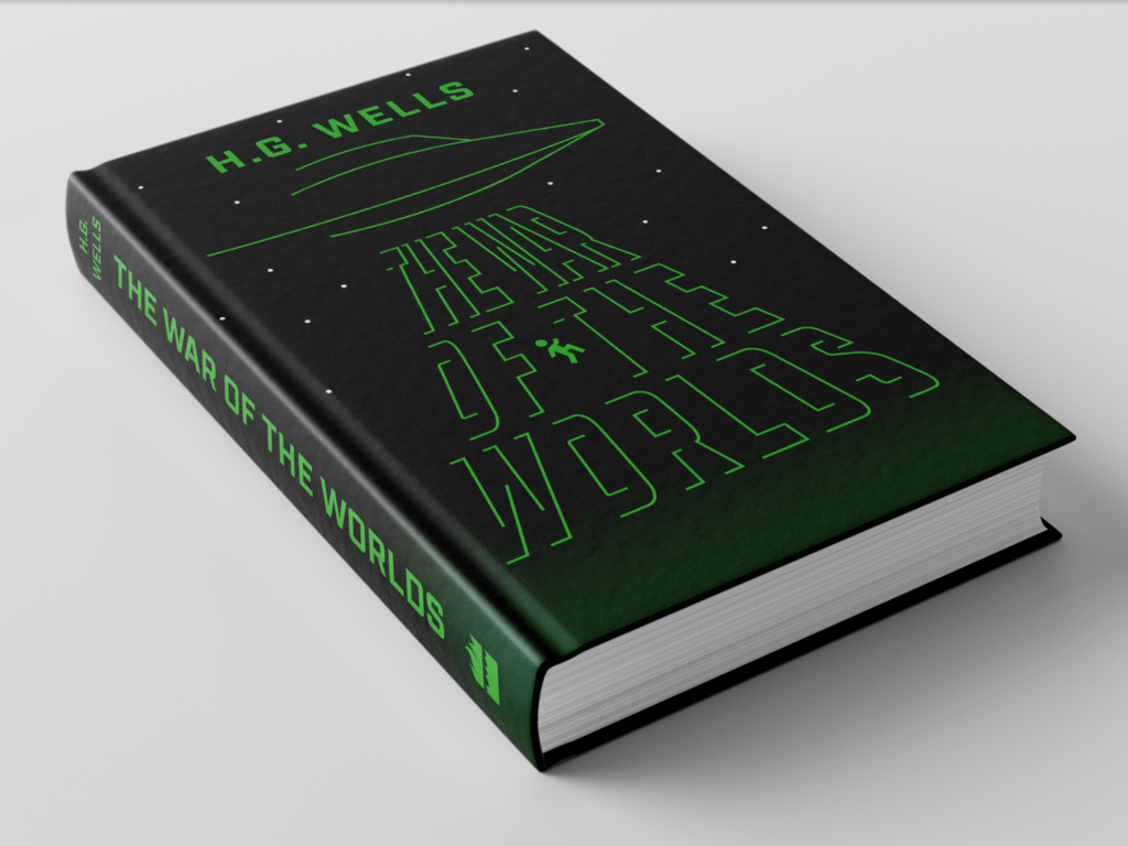 This is a redesigned book cover of H.G. Wells’ “The War of the Worlds.” The black and green color way on the book gives this cover a very sci-fi representation.